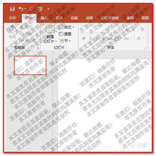 启动PPT软件,并新建了一个空白演示文稿。再新建一个空白幻灯片。