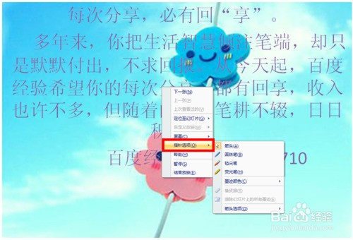 这时我们将鼠标移到“指针选项”,这时我们可以看到又会下拉选项,这时我们选择自己喜欢的颜色来做标记。