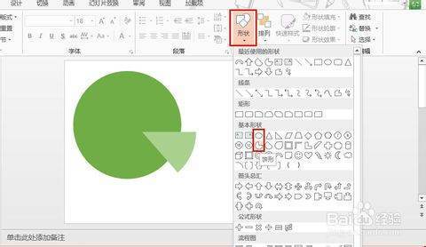 1.绘制表盘。通过插入菜单中的形状,选择椭圆(用于绘制底盘)及饼形(用于绘制扇形分隔盘),按住Shift键进行绘制。然后通过对扇形的旋转,缩放等操作与圆进行拼接完成表盘制作。(这种方法是最直接的,但是操作难度略大,调整也比较麻烦,因个受短源元早夫到导而我将介绍一种更巧妙的方法)