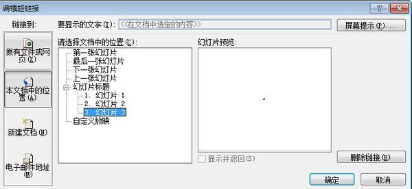3、选择本文档中的位置,选择幻灯片2,点确定;