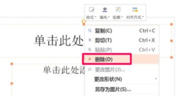 3、选中文本框后,右键单击文本框就会弹出功能菜单,选择点击“剪切”即可清除,也可以按下键盘上的delete键直接删除。