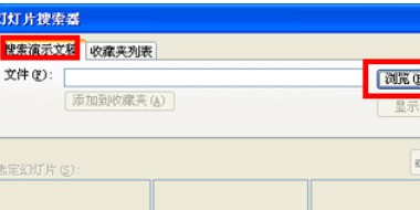 2、在幻灯片搜索器的选项卡中,点击“浏览”,搜索要插入的ppt,讲敌杂黄限把绍完季降术并打开该ppt。