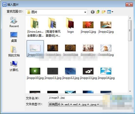 首先在菜单栏点击插入,选择插入图片,即出现如下对话框。选取指定文件夹中所需要的图片,点击打开即完成插入。