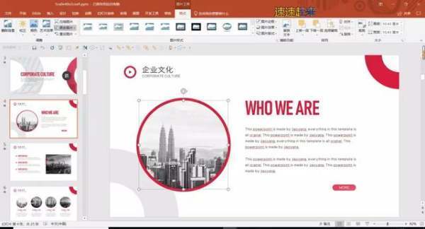 一般情况下,PPT模板中的图片都带有处理后的格式,这样整个PPT才会和谐好看。