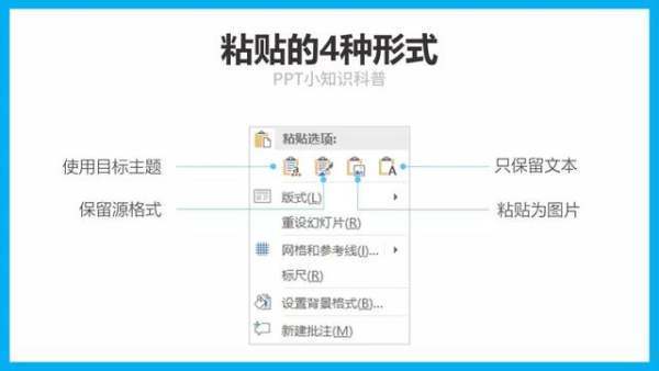 在复制模板内容到自己的PPT时,一般选择“保留源格式粘贴”。