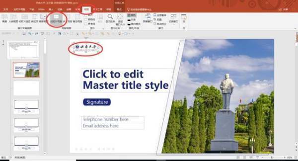 很多时候,PPT模板中会带有LOGO或者作者信息,而且每一页都有。