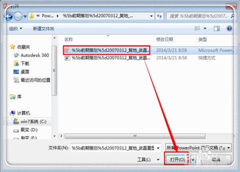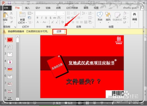 9.找到第一个ppt格式文件,这里温馨提示,由于这个备份告套程资文件只有唯一一个,为了避免操作失误损坏文件而导致不能恢复,请将这个文件复制出来备份。选中这个文件,然后点击下面的“打开”,这时候进入ppt。