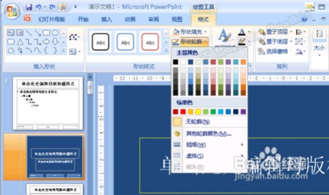 6.然后,我们再选中一个编辑框,并切换到“格式”选项卡,单击其中的“形状轮廓”按钮,从弹出的面板中选择一种颜色(如黄色),并设置相关线型等: