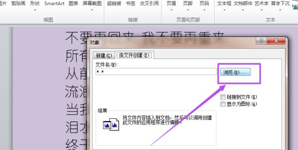3、点击“插入”选项,在打开的页面中点击 文本 中的 “对象”
