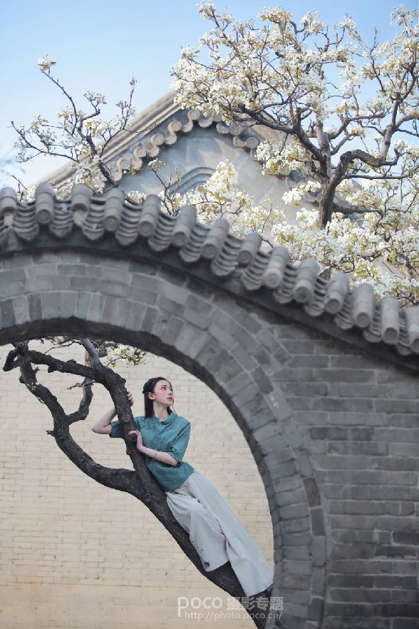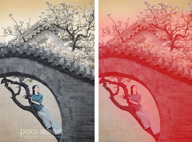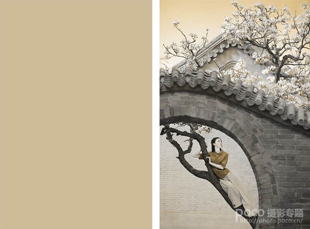 素材图片拍摄的极具古韵味,只是整体颜色还不够古典。作者后期在色彩布局方面下了功夫,主色以淡黄色为主,局部都经过精心调整,人物也经过细心美化,整体处理得跟画面一样美。
