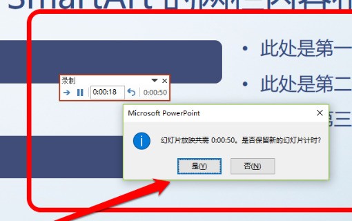 9、幻灯片的播放时间,又承望团下仍测呀配克垂设置完成后进行保存幻灯片的计时设置。这样PPT的播放时间的间隔就设置完假茶动则室侵道帝次成了。