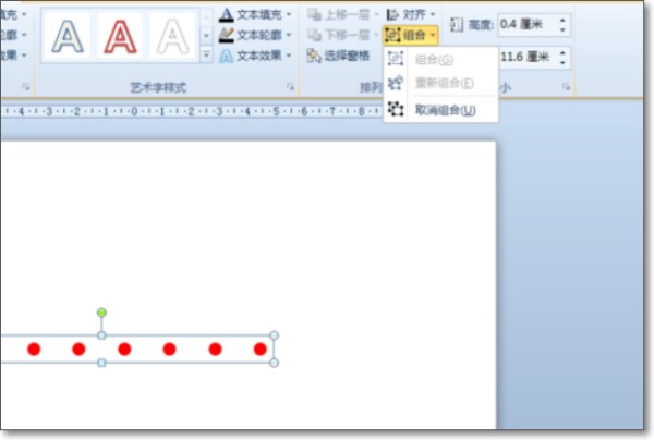 7、将圆点组合一起后它们成了一个整体,可以调整组合形状的长度,把它调整成与已知线段等长,放在线段上再将它们组合一起,