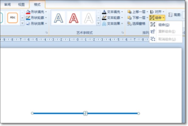 3、框选插入中点的线段,在“排列”组中单击“组合”按钮,在下拉菜单中选择“组合”命令,把它们组合在一起。还可以在“形状样式”组中设置颜色、线条粗细、填充等。