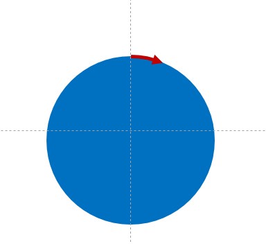 考虑到如果用圆形路径来实现这个动画的话,那箭头的方向一直不会变,这样的动画很别扭,所以我们可以使用陀螺旋动画来实现,具体步骤: