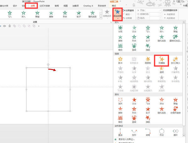 5、选中组合,依次点击动画——添加动画——陀螺旋
