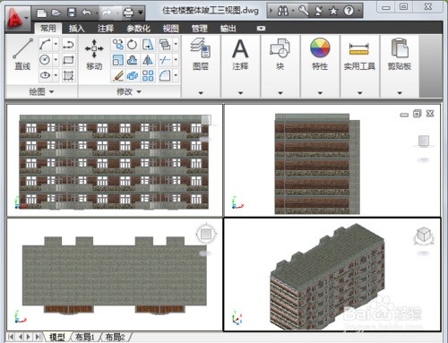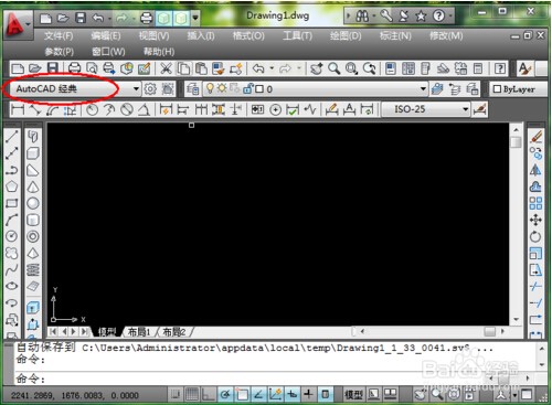 5、这是背景调成黑色之后的图片。如下面第一幅图。记住了,这里的工作空间是autocad经典。当然,当我们切换成三维建模时,cad工作区域的背景依旧还是黑色的,如下面第二幅图。