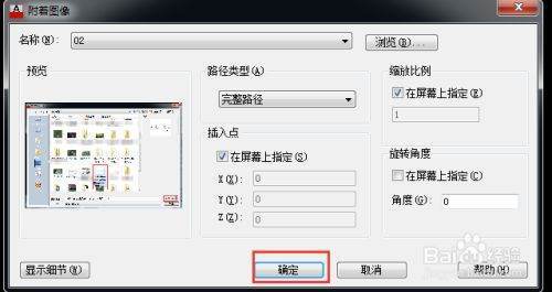 选择你要插入的图片,选择【插银雹入类型】---【插入点】--【确定】,把图片插入到CAD。