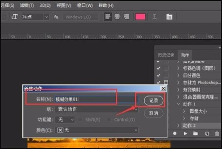 4、对新的动作起个名称,然后点击右侧的“记录”。