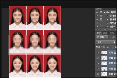 7、点击确定后,将图层填充白色,一寸照片移到左上角。