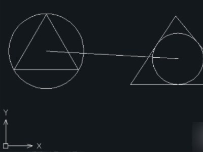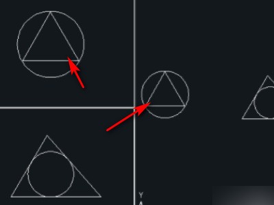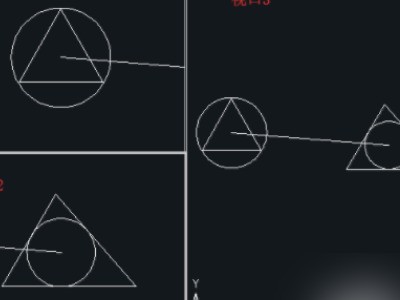 3、鼠标左键单击视口1,绘制圆A的内切迹升物三角形,此时可以看到视口3中圆笑塌A也绘制了一个内切三角形。
