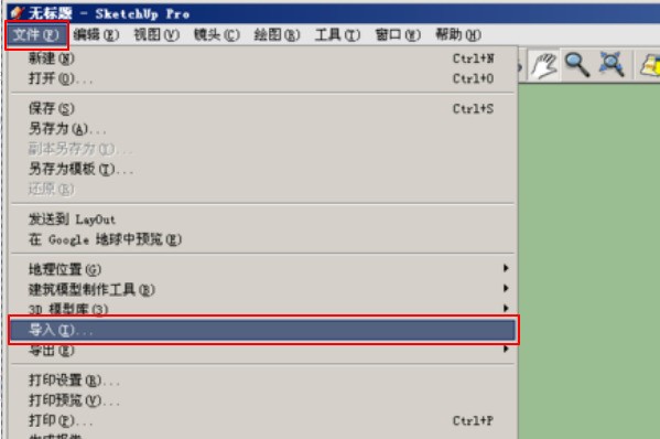 4、然后,完成上述步骤后,依次单击SU左上角的“文件”-->“导入”选项,如下图所示。