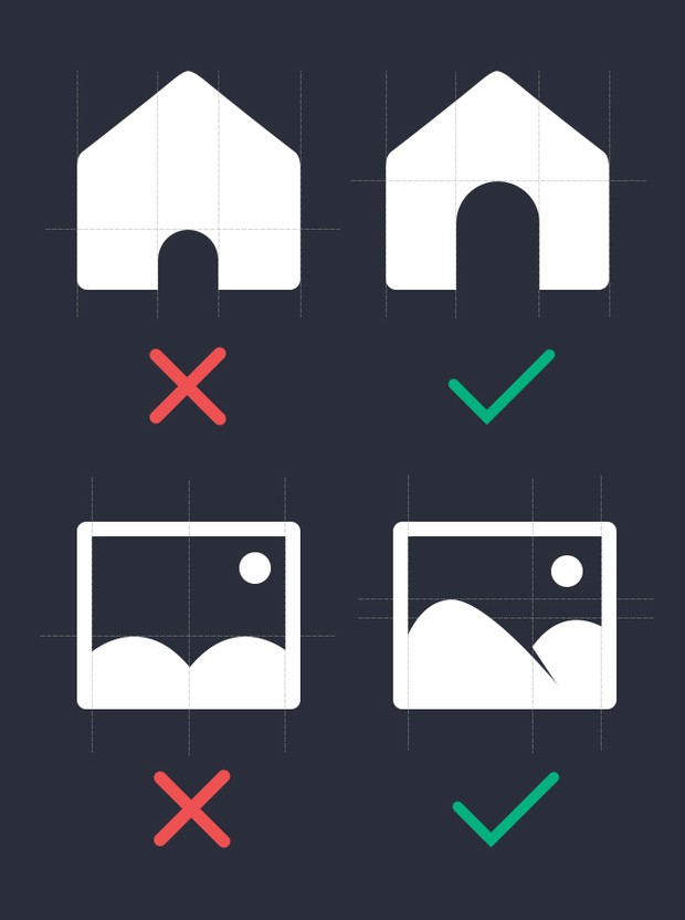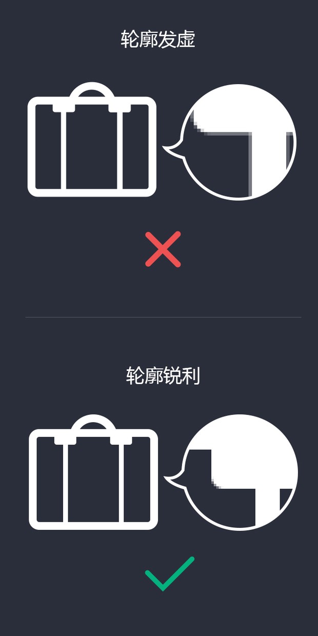需要锻炼厉害的眼睛,使出你的火眼金星捕捉每个像素之差,像素满格才能清晰的呈现,细分出来通常会遇到以下3种情况,这也是最影响图标基本质量的问题点。