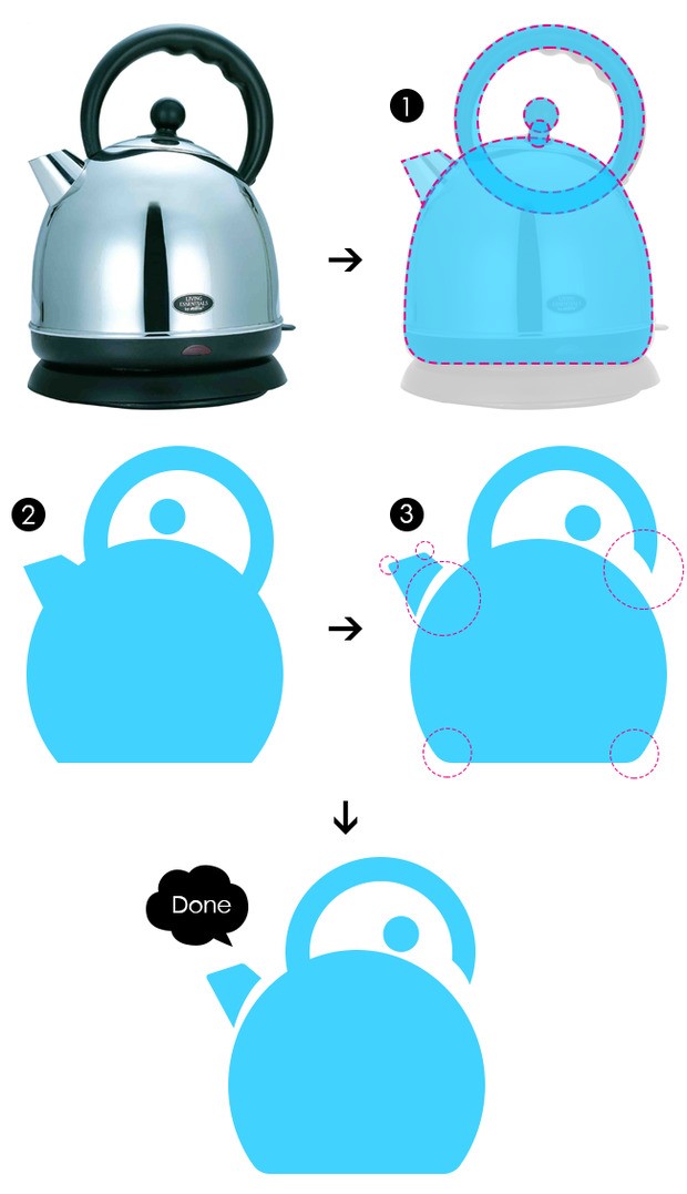 通常在绘制已有参照物的基础上去设计一个图标,可以根据你喜欢的造型参照物去进行分析,先抓取到参照物的关键节点,几何绘制出来一个相似的基本图形。