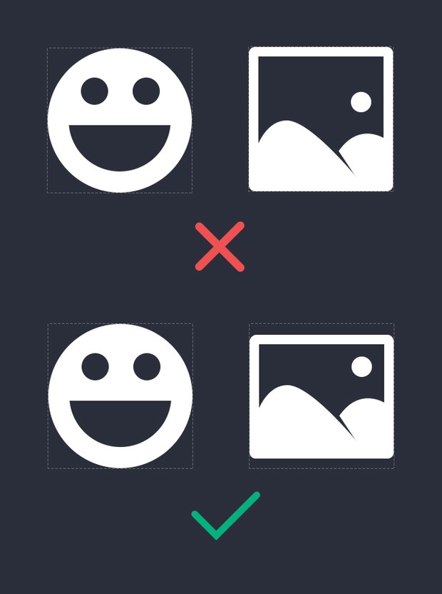 同一个尺寸规格,但根据不同形状的图标,会导致面积占比引起的视差大小不同,但要在参考尺寸范围内绘制进行调整。以下图标示例都是撑满方框边缘绘制,按道理这好像是准确的,但由于人的肉眼会有视差问题,所以做的设计就要暂时抛开科学,以人的真实情况去判断再调整。