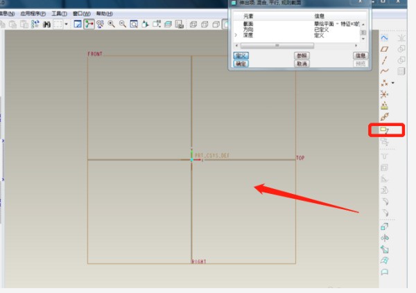 4、然后,完成上述步骤后,定义草绘平面,如下图所示,然后进入下一步。