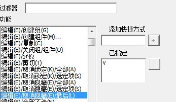 3.我们再次设置其快捷键为V,没有出现?的窗口,说明,我们设置的快捷键没有与默认的快捷键重复,设置快捷键成功,如果我们不想要这个快捷键了,直接点击右侧的减号即可将其删除