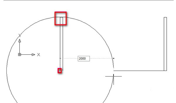2、然后以方形柱子的左下角和右下角的点为圆心画半径为2000的圆。