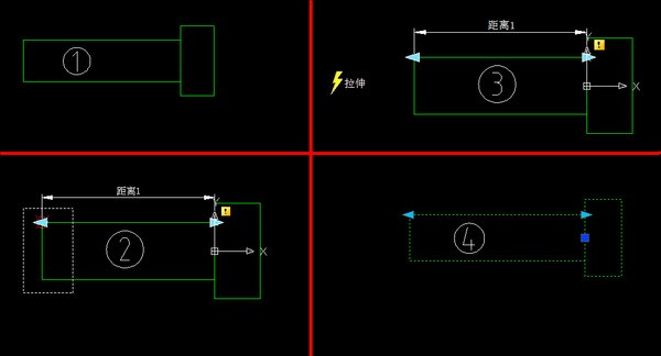动态块中的参数,动作,参数集中包含了太多的选择,无法一一列举了,这里举个简单的例子说明吧。例如我画一个螺栓,当然画的很简单,只做示意用,不用苛责。1. 画一个简易的螺栓。如图。2. 进入块编辑器,在如图所示的位置,给螺纹长度上增加一个“线性参数”,这时候在直线的两个端点上,出现两个青色的箭头。然后切换到动作,选拉伸动作,让你选择参数,你就选那个“线性参数”,就是刚才标上去的类似标注的东西了。然后让你选择与动作关联的参数点,参数点就是那个参数带的两个点了,现在想要螺栓长度在左侧可以改变,当然选左侧的那个点,其实移动过去就有红色圆圈提示的,只能选左点和右点,现在选左点。之后让你选拉伸框,直接按图2里面的白色矩形框选一下就可以了。之后是选择拉伸的对象,选上下两根水平直线和左边的竖直直线就可以。最后让你选移动位置,以为是按照线性参数来拉伸的,所以随便点一下就好了,放在外部或者内部没有关系,拉伸动作对这个不敏感。3. 以上步骤都处理好之后,就是图3的样子了,这时候关闭块编辑器,要选保存修改。4. 退出块编辑器之后,选择这个块,如图4,出现箭头,因为定义的拉伸时按左点动作的,所以你拖动左边的箭头会改变螺栓的长度,拖动右边的箭头就不会有变化。归纳一下,动态块的关键在于,有参数,有动作,动作要与参数关联。关于拉伸动作对图形的效果,例如两条水平线是拉长了,而短竖线则是移动了,这个等同于拉伸命令(S),可自己研究。至于其他的参数和动作,以及参数集的使用,就不多说了,打字好累啊,还要作图,截图,悬赏5分。。。呃。。。神呐!= CAD技术智囊团 =