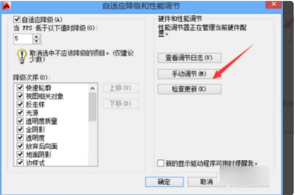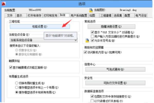 Heidi驱动AutoCAD的一种三维硬件支持。如果发生此错误,可以单击确认并正常使用。每次启动CAD时,它都会出现。取消的方法是在CAD选项中找到系统→性能,然后加速硬件取消。充装范围在屏幕上没有完全显示,充装范围太大、太复杂,数据处理时间太长。