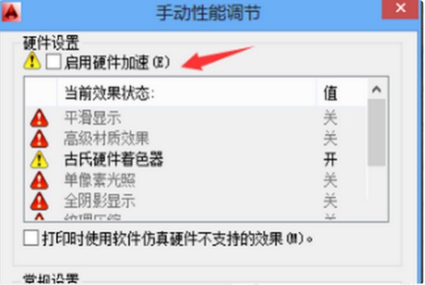 1、当AutoCAD禁用加速时,将弹出如下提示。