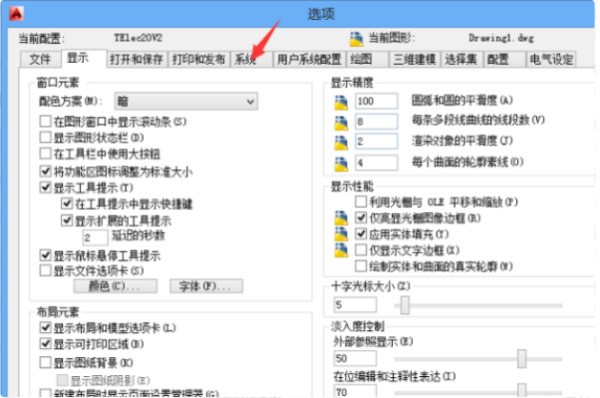 5、在[选项]对话框中,选择[系统]按钮,如下所示。