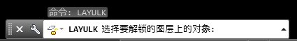 用“LayULK”命令,解锁选定对象所在的图层。命令行输入LAYULK,提示“选择要解锁的图层上的对象”,如图所示,移动鼠标单击选定对象,同时解锁图层。