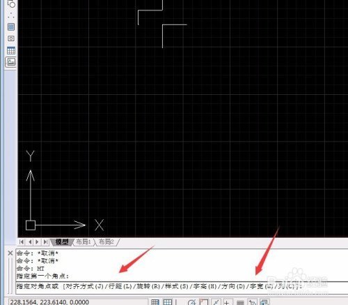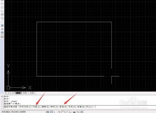 用鼠标点击这个标识之后就会在命令行出现指定一点,然后我们按照提示进行操作,就会出现和第二步一样的多行文字框,在这里我们还可以直接选择高度和长度