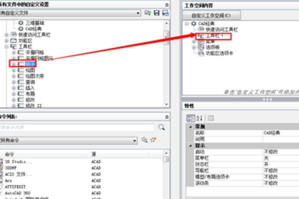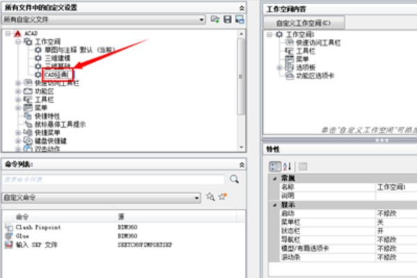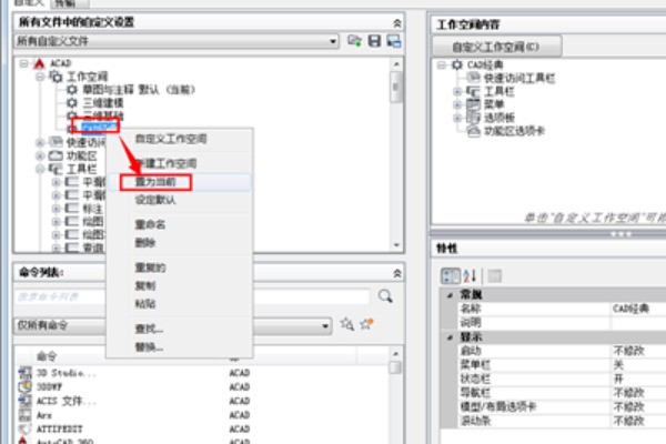 3、根据我们习惯,把新建的工作空间重新命名为“CAD经典”的版本。