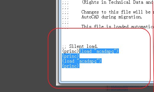 6、找到***.mnl后用记事本打开,后面可以看到多了很多加载项,统统删掉。删除多余启动项后,保存***.mnl,重新打开cad可以看到一切都变得和软件刚装好一样,又快又干净。