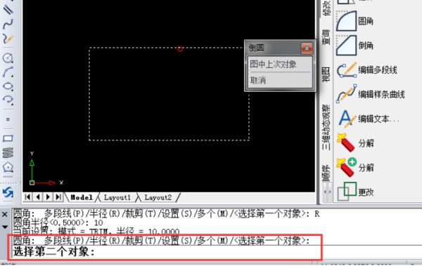 7、接着按一下空格键(重复以上命令),鼠标又会变成小方块,分别选择360问答选择其他直线,按此操作,把剩下的两个角也变成圆角。