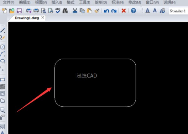 6、接下来继续点击第二条线,第一个圆角就会出来了。