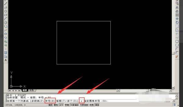 3、接下来按快捷键“R+空格(半径数值)”,这时页面下方会出现红色箭头所指处字样。
