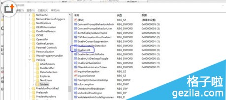 在右侧窗口中找到“EnableLUA”选项。如图2所示