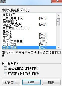 注意:语言窗口中有个“禁用拼写检查”选项,如果不想对主题文档进行拼写检查,那么就在对应的选框前打钩