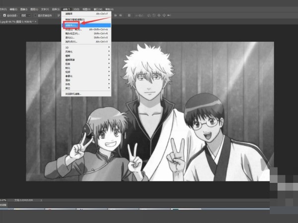 3、接下来,我们点击菜单栏的“滤镜”,然后打开点击滤镜库。
