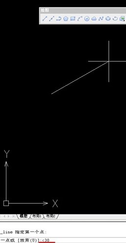 点击直线命令,然后在绘图区点击一点移动鼠标,这时,你输入<30回车,注意输入的时候看下面的输入栏,防止输入的符号没有输入进去。这时移动鼠标,发现国调也直线和水平线成30°角度了,如果直线长度不要求可以点击鼠标确定直线长度,如果要求长度是50,那么再输入50回车就得到50长度并且和水平线成30度的直鲁层原限胞肉山线了。
