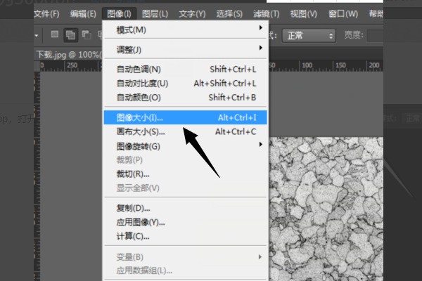 2、通过菜单,我们找到知图像目录下的图像大小选项打开。