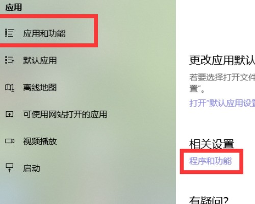 5、左边选择应用与功能,右边栏目拉到最下面,瞎绝选择程序和功能。