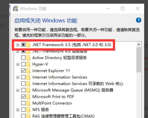 7、选中.NET Framework 3.5(包括.NET 2.0和3.0)后,会提示自动安装,确认即可。