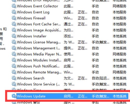 2、进入本地服务界面,选择Windows Update。
